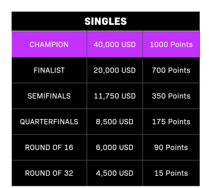 32强,奖金4500好意思金,折合东说念主民币3万傍边:林昀儒,黄镇廷,高茨,约奇克,卢伟,薛飞,宇田幸矢,阿萨尔,阿鲁纳,李尚洙,普卡,张禹珍,杜达,博雷特,篠塚大登,陈垣宇,朱芊曦,郑怡静,杜凯琹,池旼亨,金娜英,韩莹,高达,黄怡桦,申裕斌,肖瑶茜,萨马拉,袁嘉楠,温特,巴特拉,帕瓦德,迪亚兹