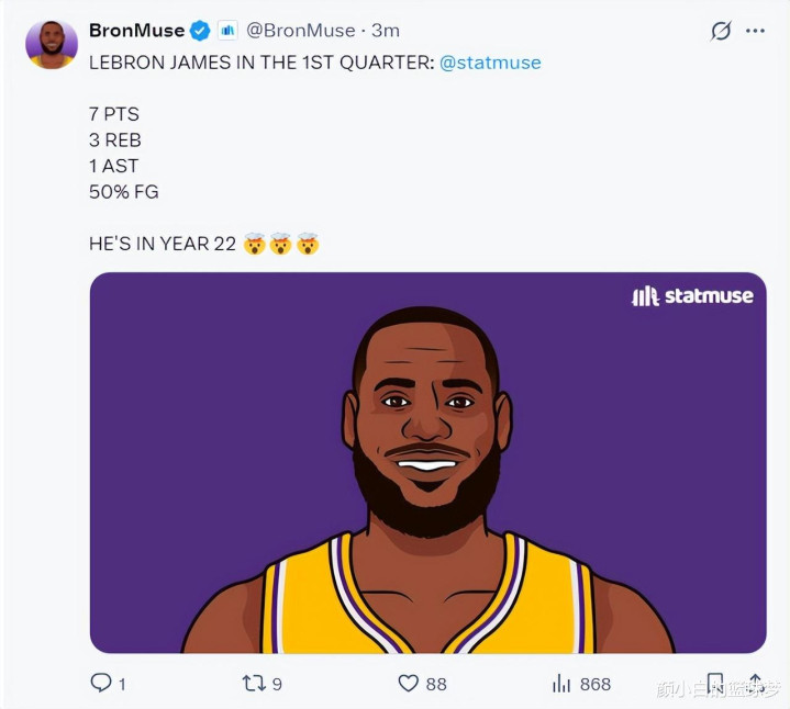 没思到40岁的勒布朗背靠背第二场也要打,因为八村垒受伤老詹不得不更多打四号位,昨晚他在这里拿到33分17篮板6助攻1抢断1盖帽的全面数据,此役他将络续死战,全场的球迷齐为King快活。