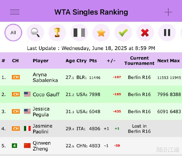 跟着保利尼出局,她在温网之前的积分也定型了,那即是4806分,郑钦文呢?原本是寰宇第4的位置,但是她毁掉了柏林站的比赛。