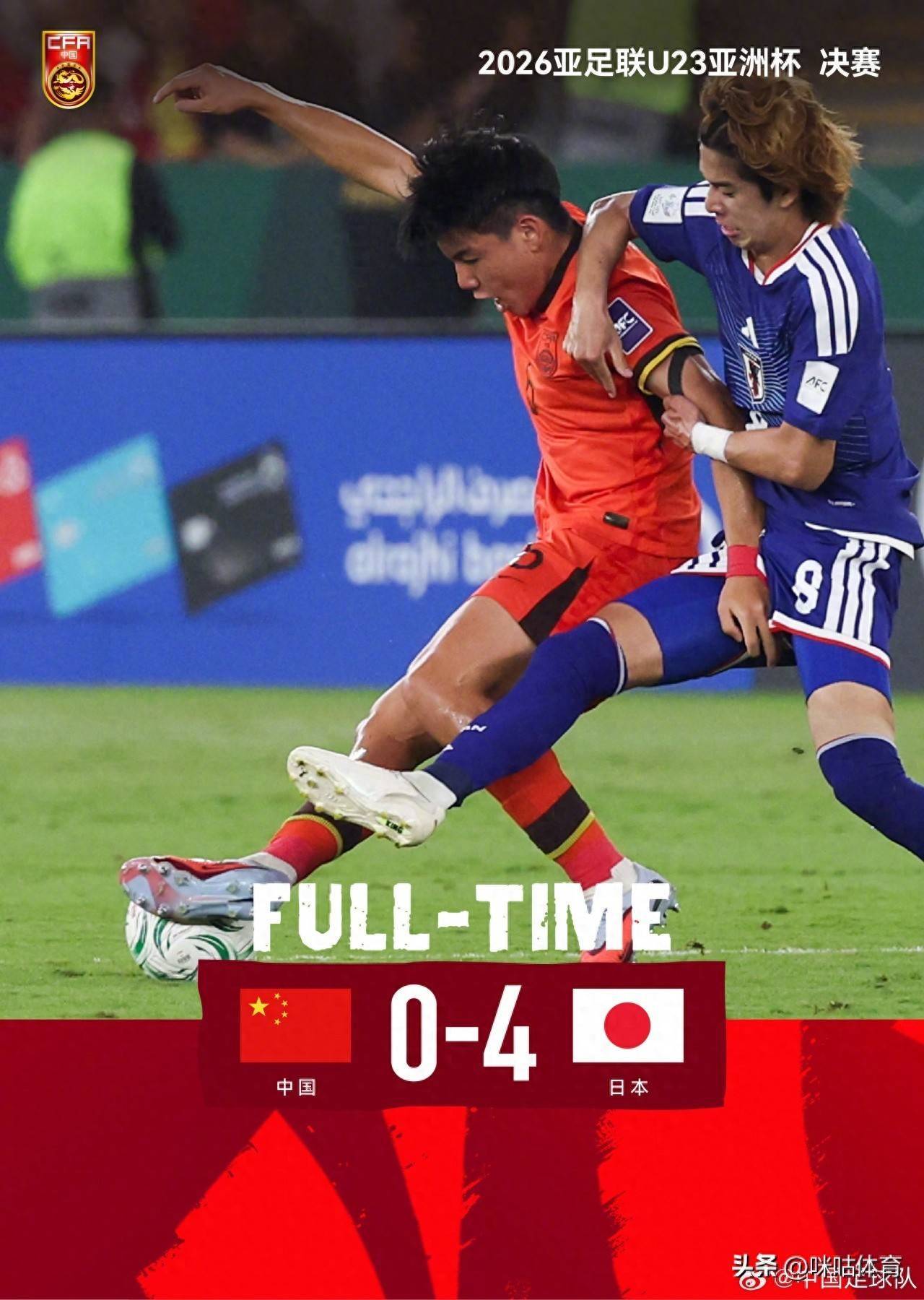 中国足球队官方暗示:在刚刚已矣的2026亚足联U23亚洲杯决赛中,中国队以0比4负于日本队,与冠军交臂失之。