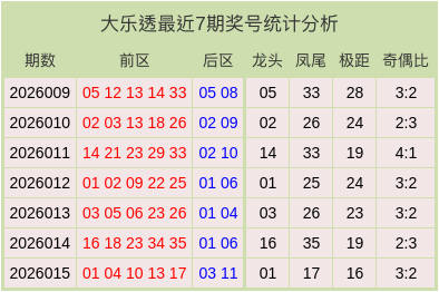 大乐透最近7期奖号和数据分析表